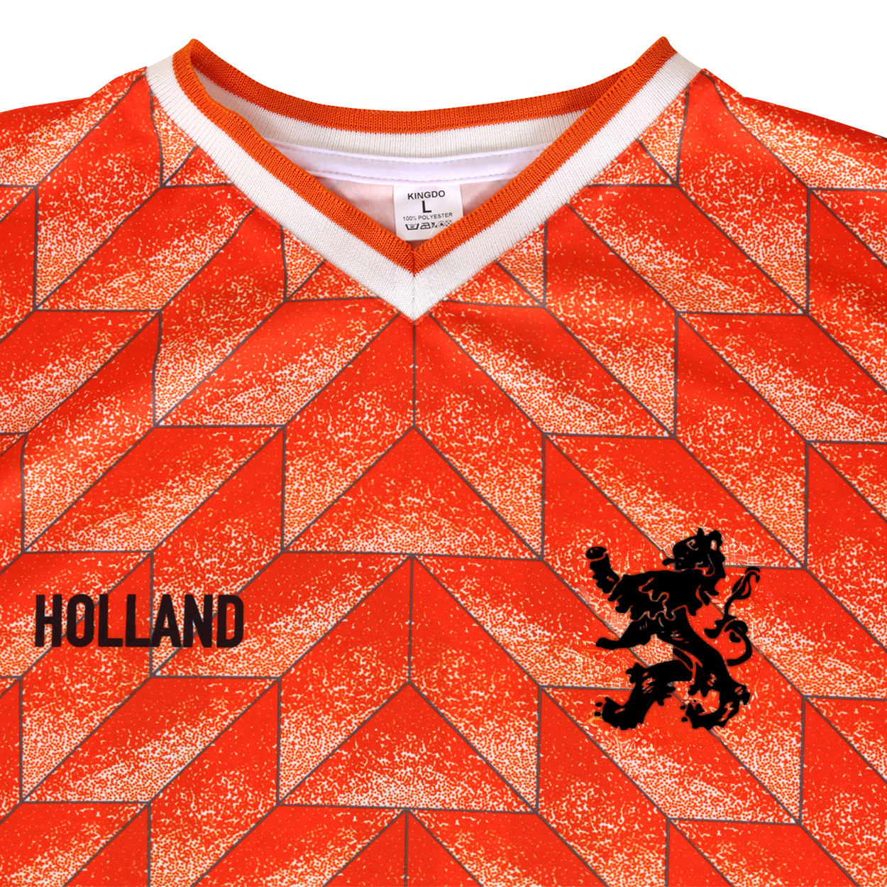 Stap terug in de legendarische finale van het EK 1988 en domineer het veld in het herkenbare oranje shirt waarin Ruud Gullit en Marco van Basten hun historische doelpunten scoorden en de beker mee naar huis namen. Het voetbalshirt is doordrenkt met een uniek grafisch patroon dat over het hele shirt is gedrukt, terwijl het iconische zwarte leeuw-logo trots op het shirt prijkt. Op de achterkant van het shirt staat de naam van Van Basten met nummer 12. Vervaardigd van hoogwaardig 100% polyester, biedt dit shirt ultiem comfort en ventilatie dankzij de fijne mesh-structuur. Kleurvastheid is gegarandeerd, zelfs na herhaaldelijk wassen, waardoor je shirt altijd even stralend blijft. Beschikbaar in zowel kinder- als volwassen maten.
