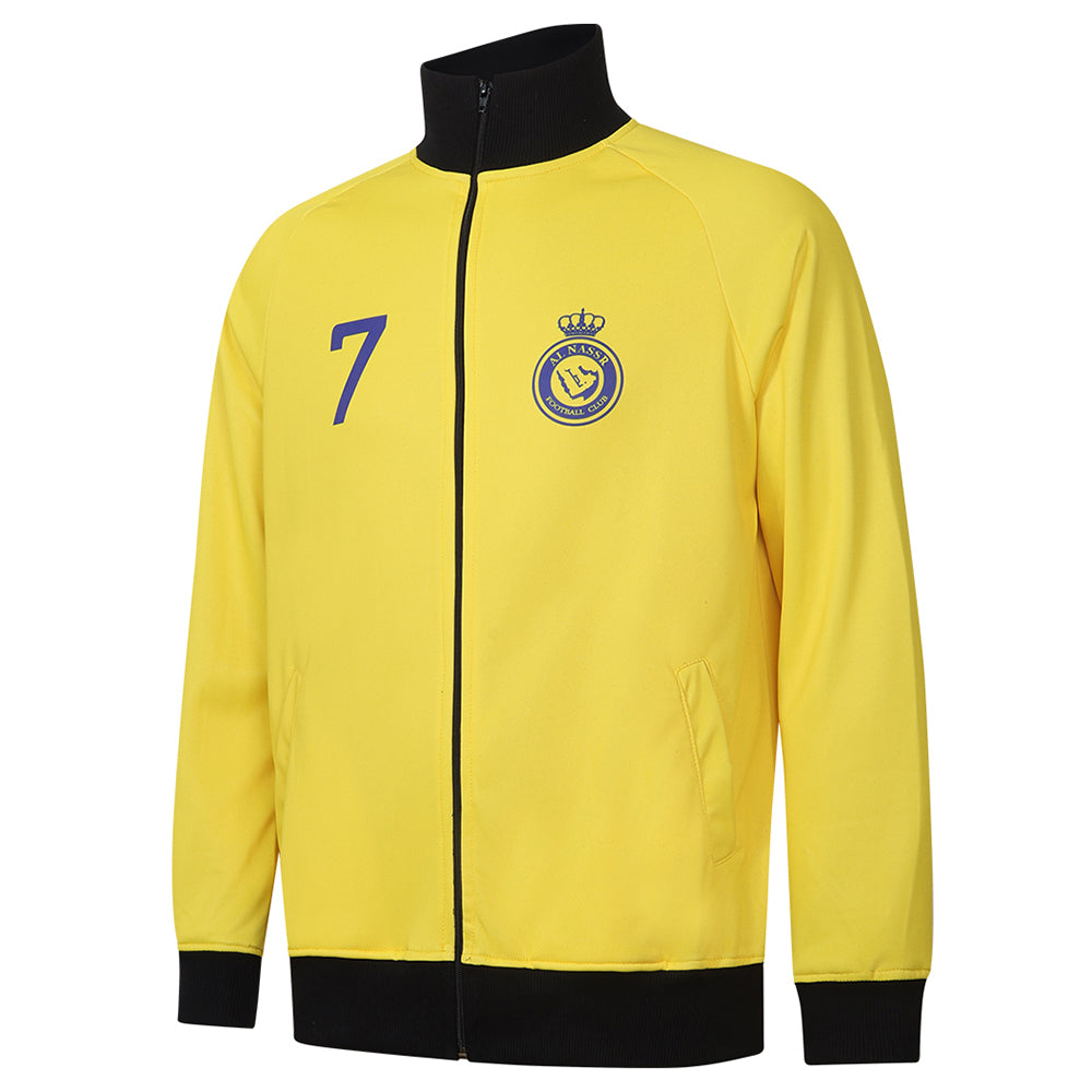 Detta träningsset från Al-Nassr Ronaldo har praktiska fickor med dragkedja på träningsbyxorna och lösa fickor på träningsjackan för extra bekvämlighet. Tillverkat av hållbar polyester behåller detta träningsset sina färger även efter otaliga tvättar. Finns i både barn- och vuxenstorlekar.