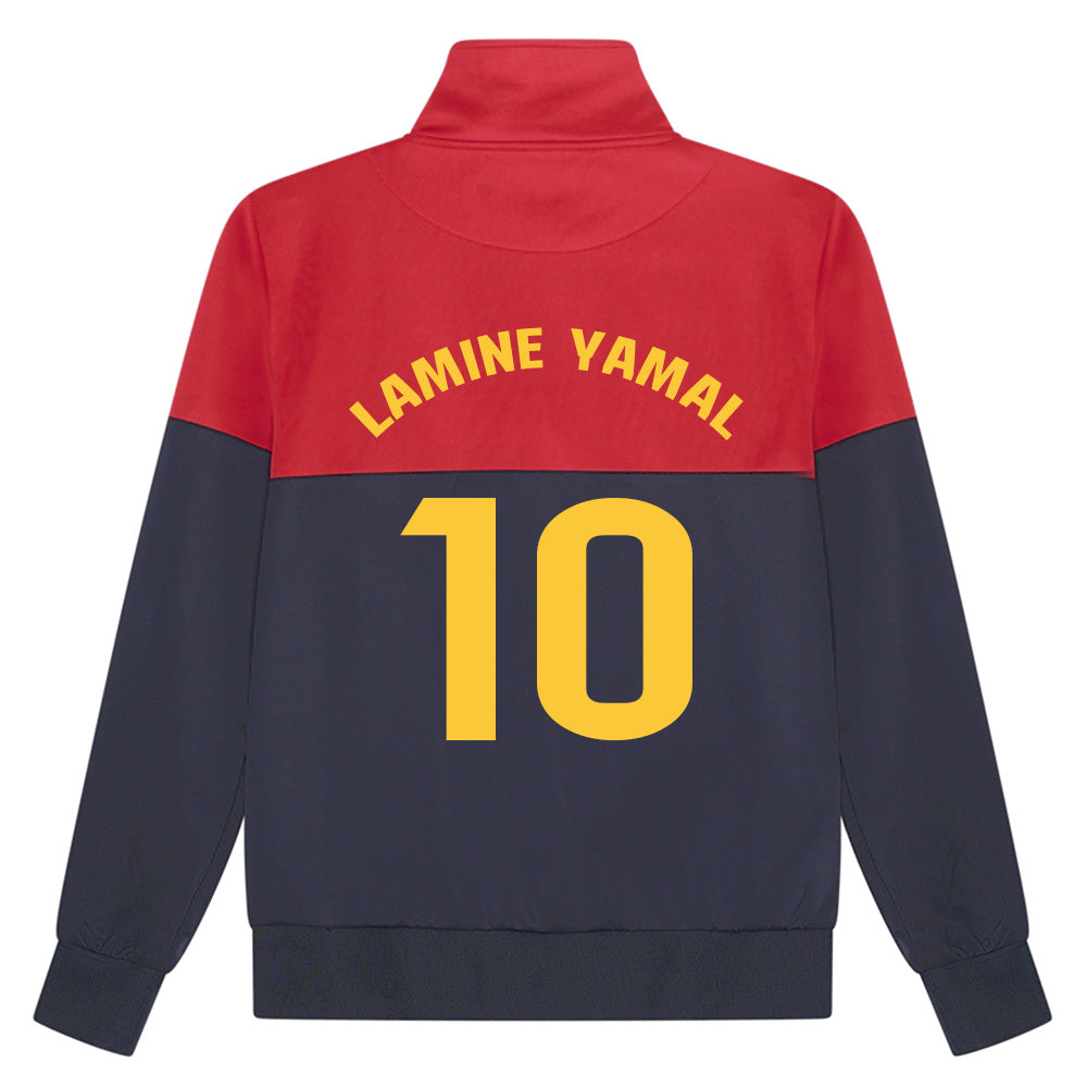 ✔ Med Lamine Yamal & tröjnummer 10 – Barcelonas stigande stjärna lyser på jackans baksida.
