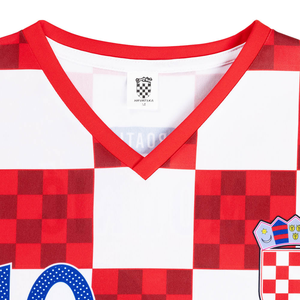 Denna Fotbollströja finns för både barn och vuxna och består av en bekväm tröja och matchande vita shorts med Kroatiens vapen. Tillverkad av andningsbart och smidigt material som sitter perfekt under fotbollsspel eller när du hejar från soffan.