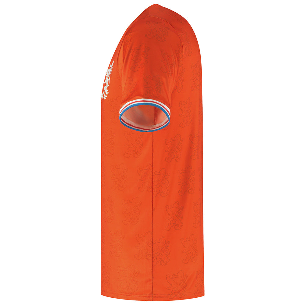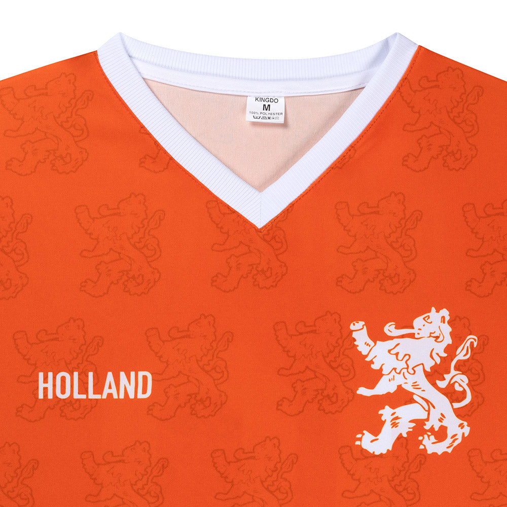 Upplev magin från det legendariska VM 1994 med denna stiliga retrotröja från Nederländerna. Den klassiska orange designen med subtila lejon-detaljer, vit V-ringning och röd-vit-blå accenter på ärmarna är en hyllning till en av de vackraste fotbollströjorna någonsin.