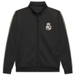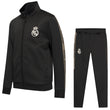 Setet består av en sportig jacka med dragkedja och matchande byxor, båda med officiell Real Madrid-logotyp och lyxiga detaljer längs ärmar och byxben. Tack vare det andningsbara och flexibla tyget erbjuder detta set optimal komfort och rörelsefrihet – perfekt för både sport och fritid.