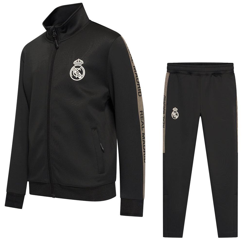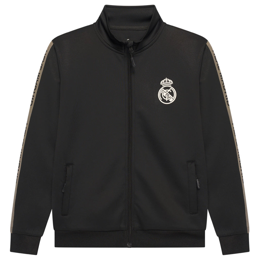 Officiella Real Madrid-logotyper på jacka och byxor