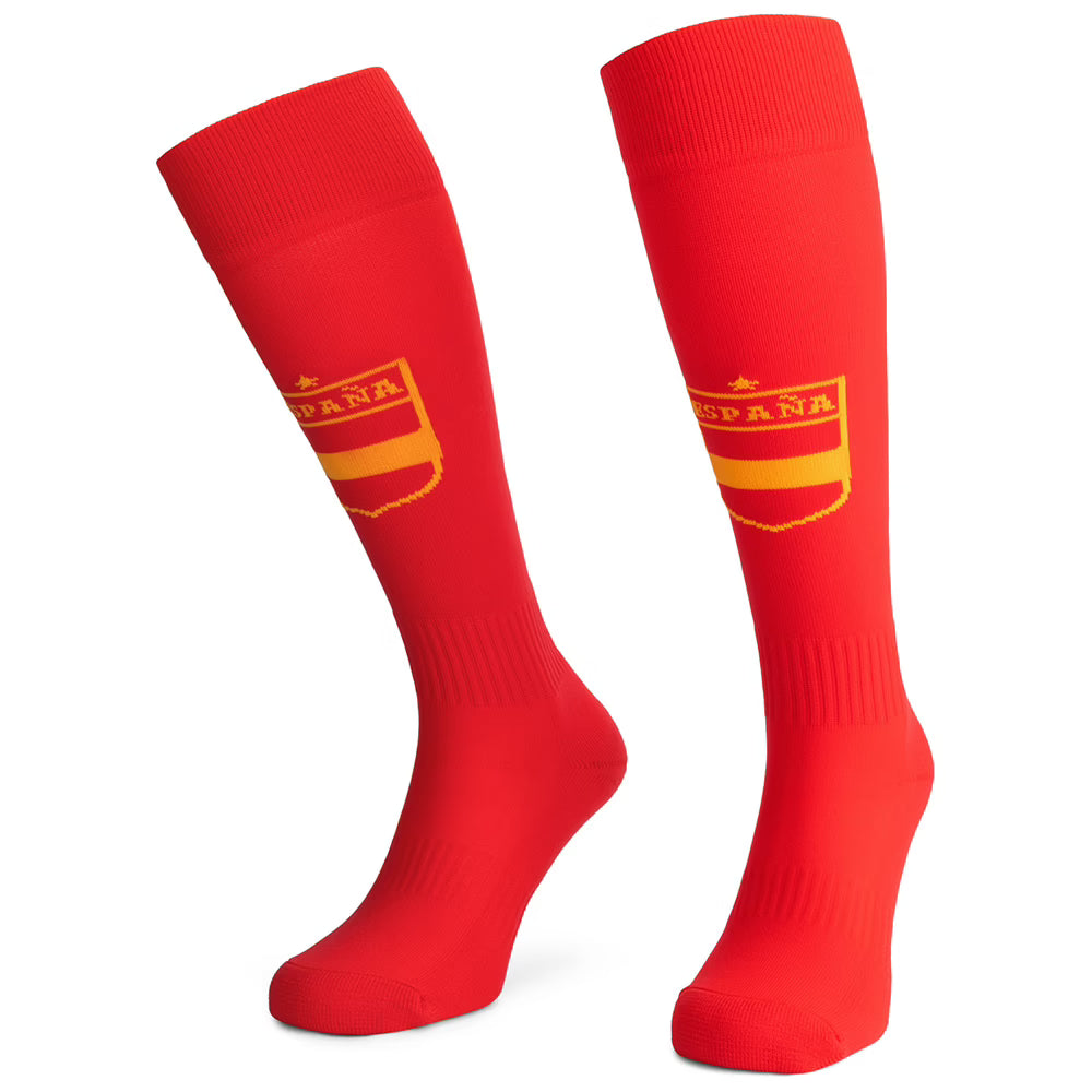 Beställ nu dessa röda Spanien fotbollsstrumpor. Gjorda av polyester och håller länge!